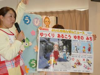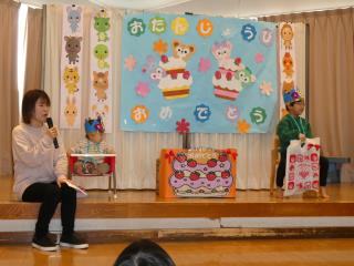 1月生まれの子の誕生会と保健・安全指導をしました。誕生児はプレゼントをもらいニッコリ!その後インフルエンザ予防や冬に気をつけることについてお話しがありました。