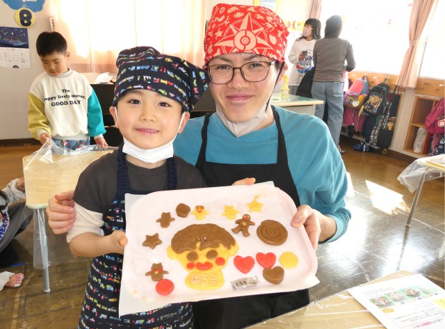 毎年行われるきりん組の親子クッキング。クッキー生地で自分の似顔絵を作ります。その後給食の人に焼いてもらい持ち帰りです。みんなかわいく出来たかな?